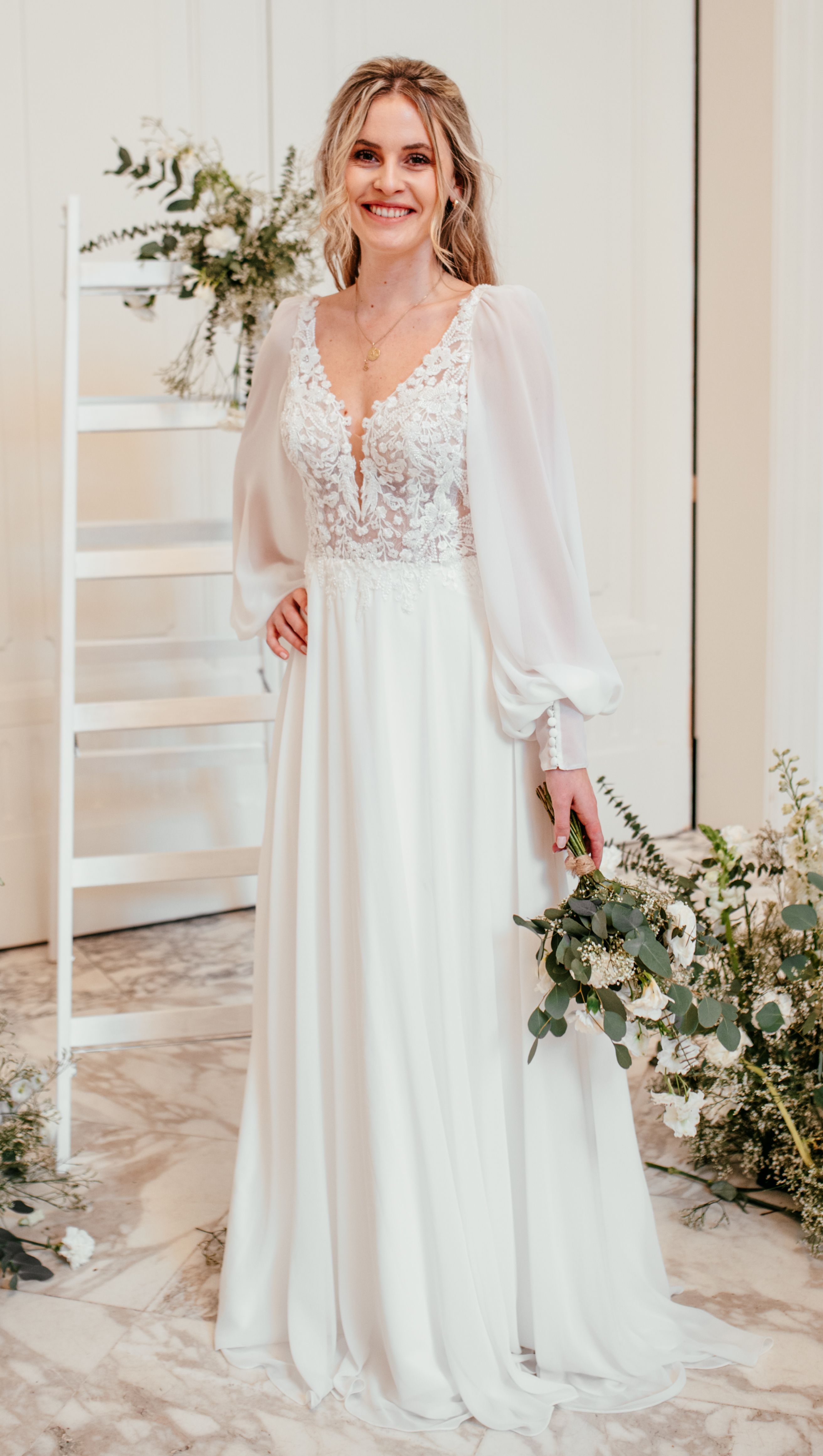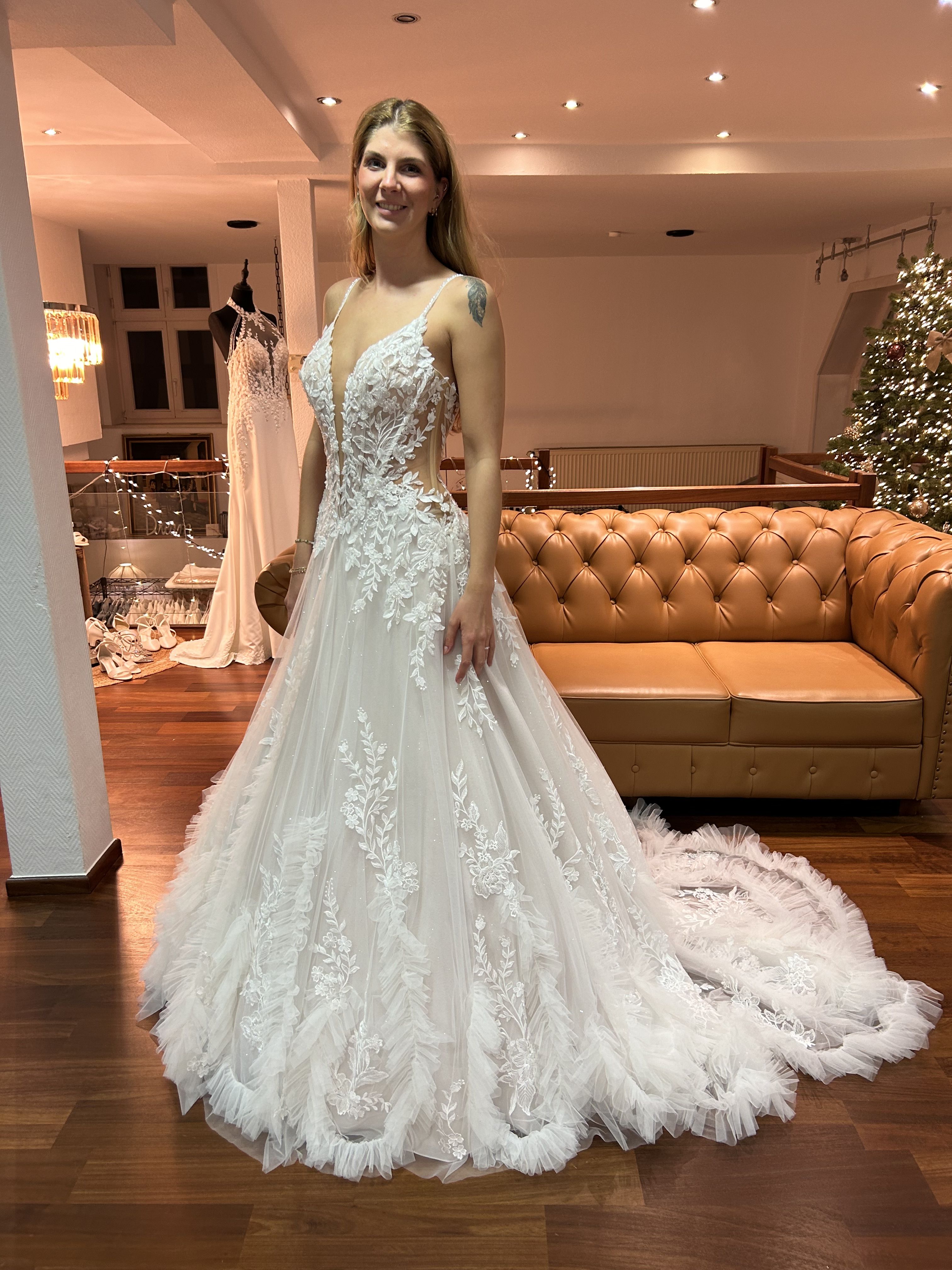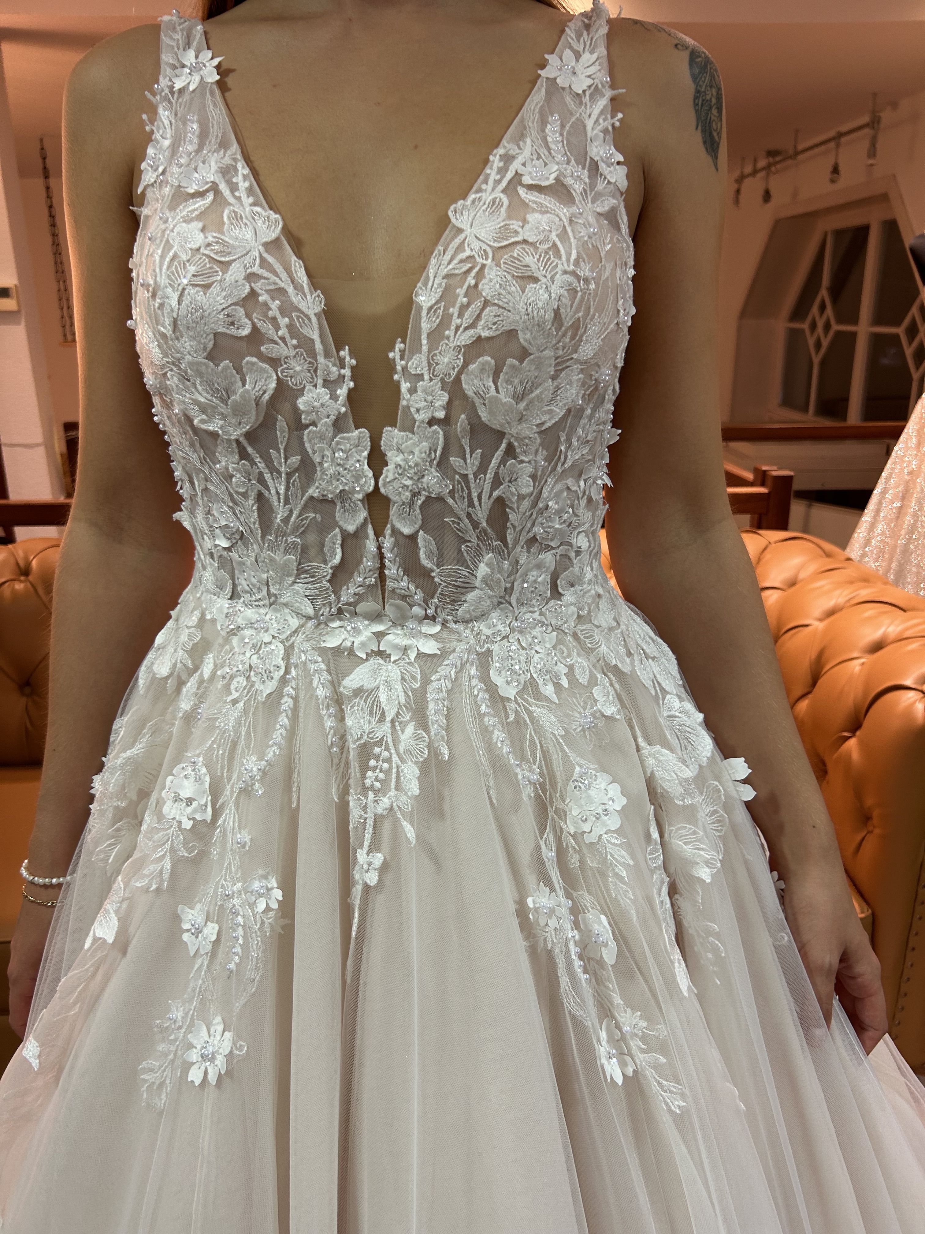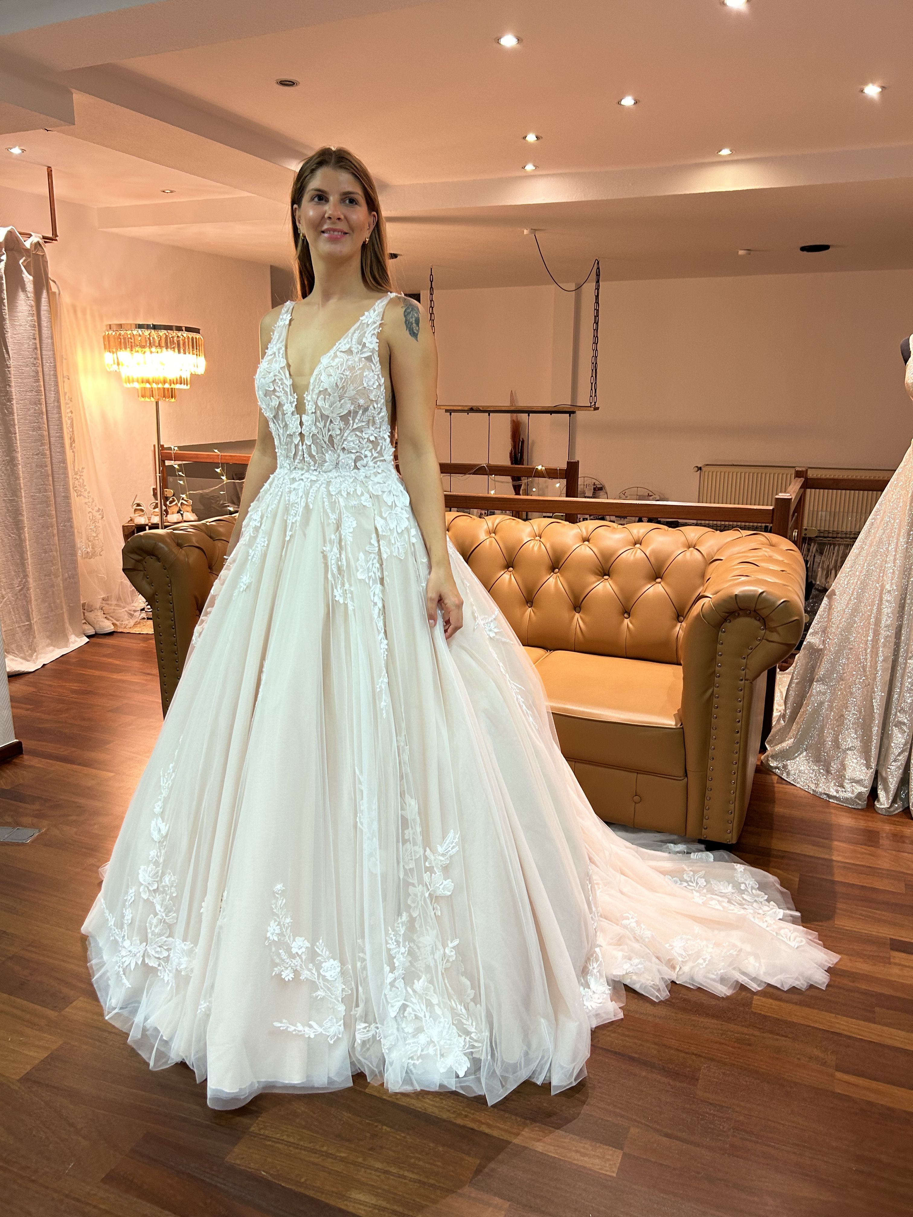 Hier seht ihr ein paar unserer Neukleider. Wir können euch alle Stil-Richtungen in unserer Hochzeutsdeele zeigen. Von dem schlichten bis hin zum pompösen Prinzessinen-Brautkleid, Boho/Vintage, Luxus Kleider, Langarmkleider, Fit & Flare, leichte Kleider und A-Linie.