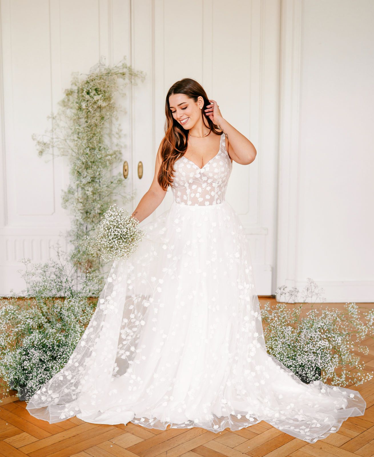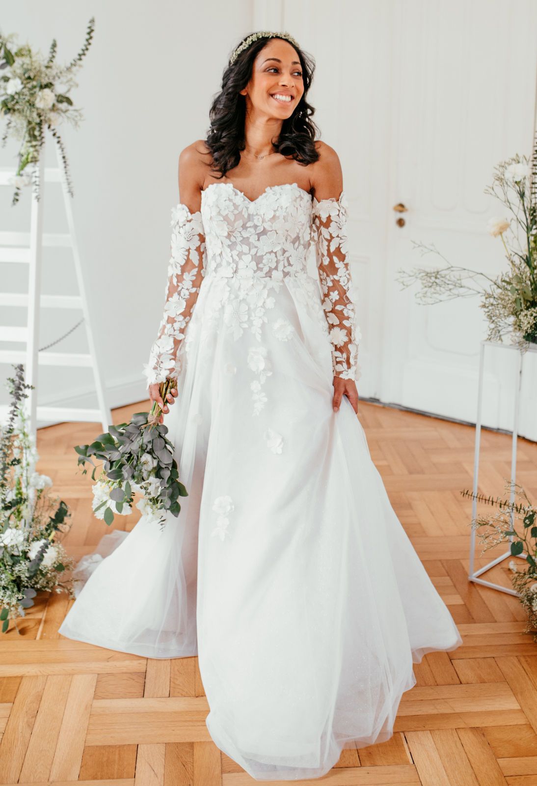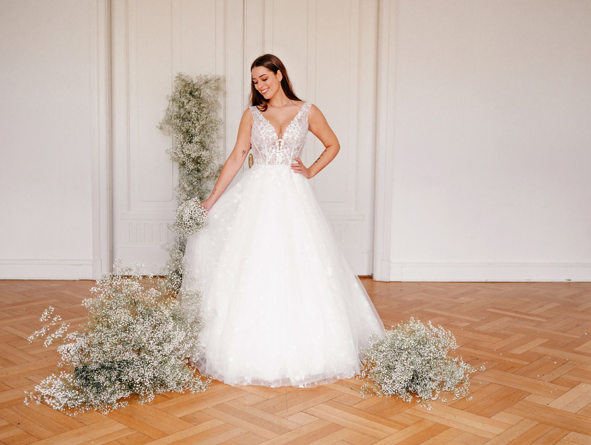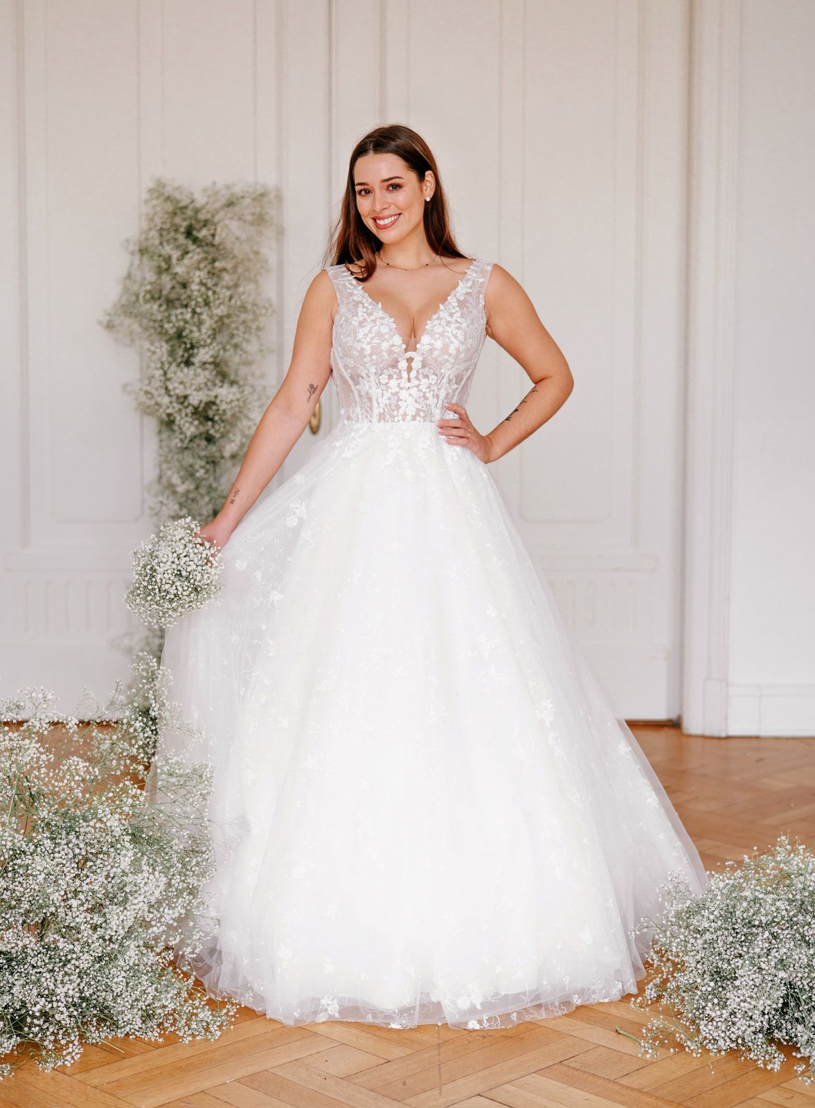 Hier seht ihr ein paar unserer Neukleider. Wir können euch alle Stil-Richtungen in unserer Hochzeutsdeele zeigen. Von dem schlichten bis hin zum pompösen Prinzessinen-Brautkleid, Boho/Vintage, Luxus Kleider, Langarmkleider, Fit & Flare, leichte Kleider und A-Linie.
